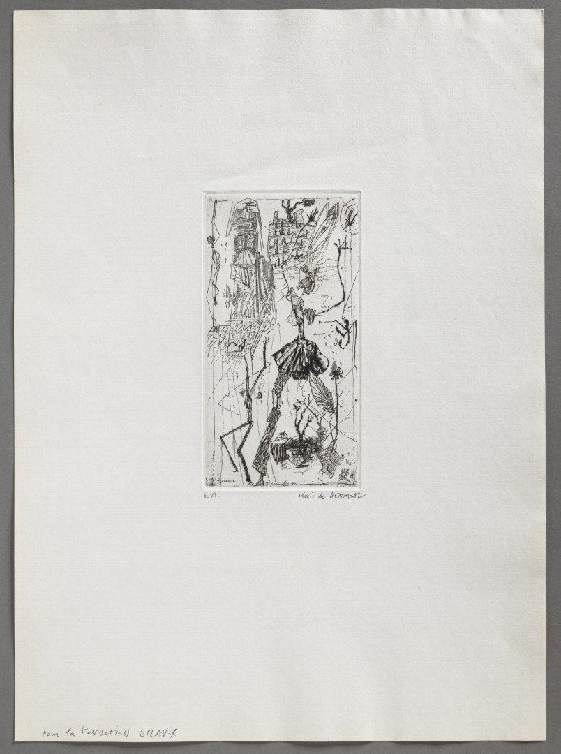 Alexis DE KERMOAL - 10 décembre 1986. Pointe sèche, E.A – Feuille : 37,7 x 27,3 cm (Plaque : 15,5 x 8 cm)